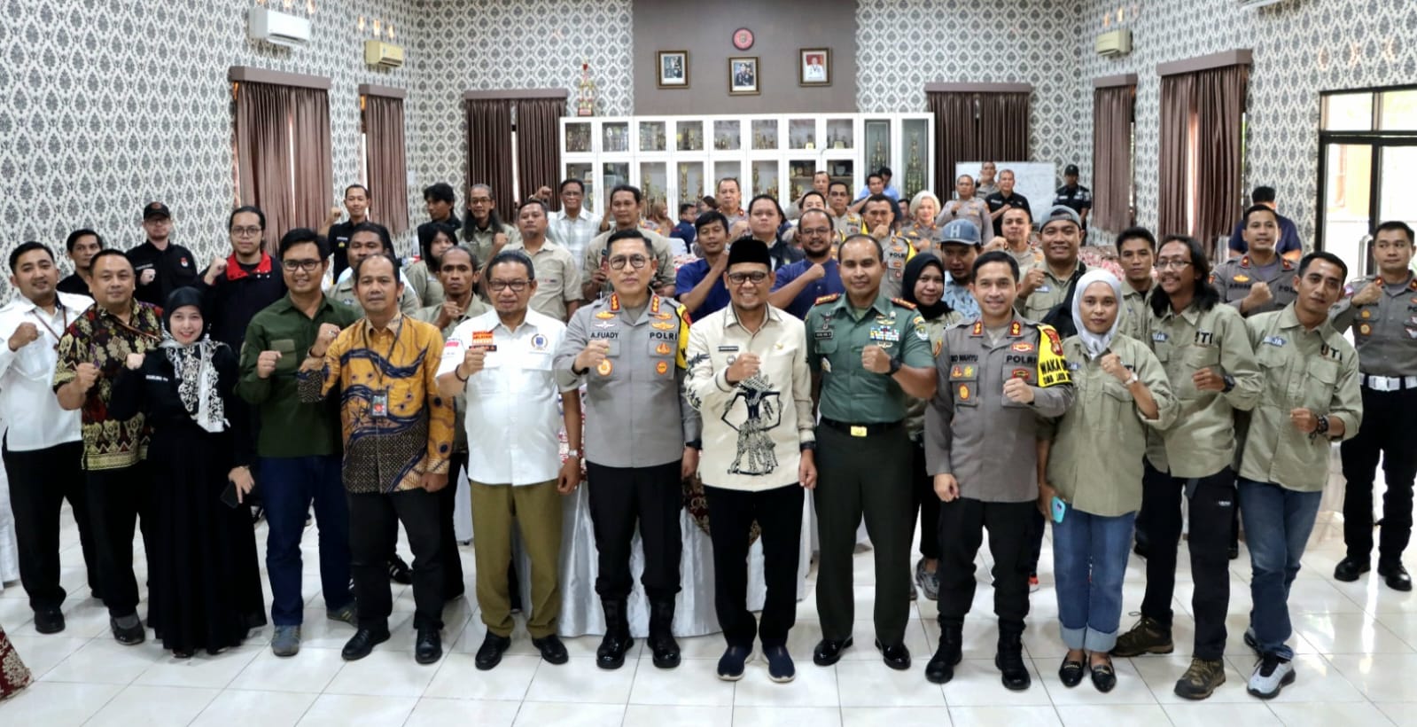 JABAR MEMANGGIL - Menyambut masa kampanye Pemilu 2024, Polres Metro Depok menggelar deklarasi anti hoaks di Mapolres Metro Depok, Kamis (09/11/2023). Deklarasi tersebut dihadiri jajaran Forkopimda serta kelompok kerja (Pokja) Wartawan Kota Depok.