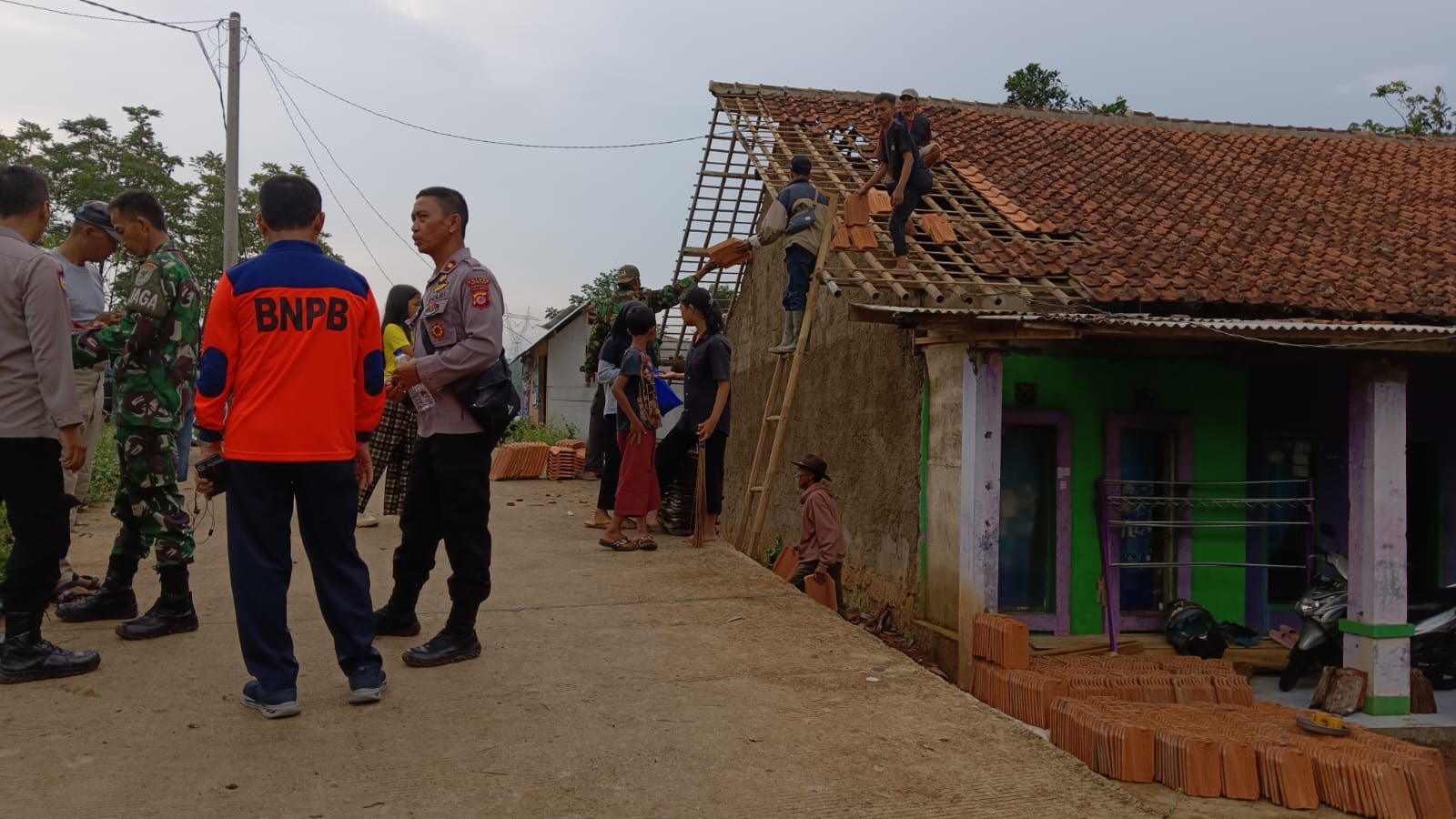 "Untuk penanganan sementara kita bersama TNI Polri bahu membahu mencoba membantu memperbaikinya, dan mudah-mudahan malam ini bisa untuk berteduh". Jelas Atang Sutarno kepada Memanggil.co ( Husni Nursyaf)