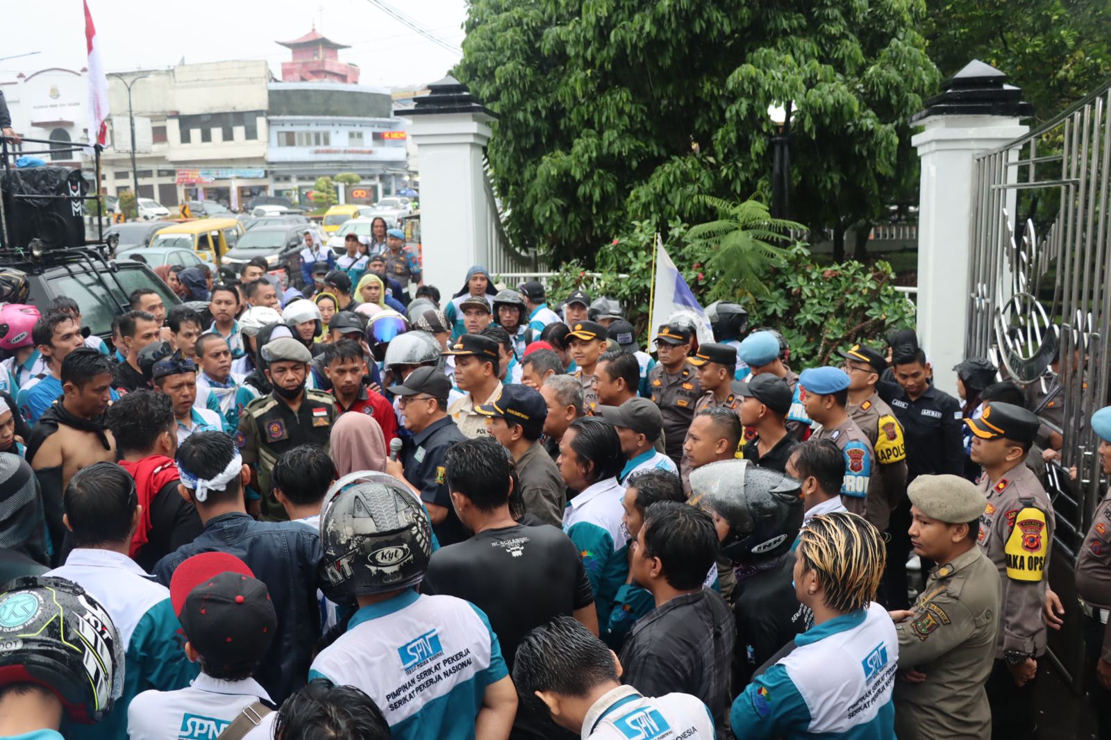 “Meskipun hujan deras, kami tetap bertahan di depan massa aksi, memberikan rasa aman, dan membantu komunikasi aspirasi mereka kepada Pemerintah Kabupaten Sukabumi,” tambahnya.Diketahui, aksi unjuk rasa DPC SPN Sukabumi di Gedung Pendopo Kabupaten Sukabumi dilakukan untuk menyampaikan aspirasi terkait beberapa tuntutan, antara lain menolak PP no. 51 tahun 2023 tentang penetapan UMK Kabupaten Sukabumi tahun 2024, menginginkan kenaikan upah sebesar 15%, dan menuntut komitmen Bupati Sukabumi terkait PHK di perusahaan padat karya di Kabupaten Sukabumi. (P.Haeruman)