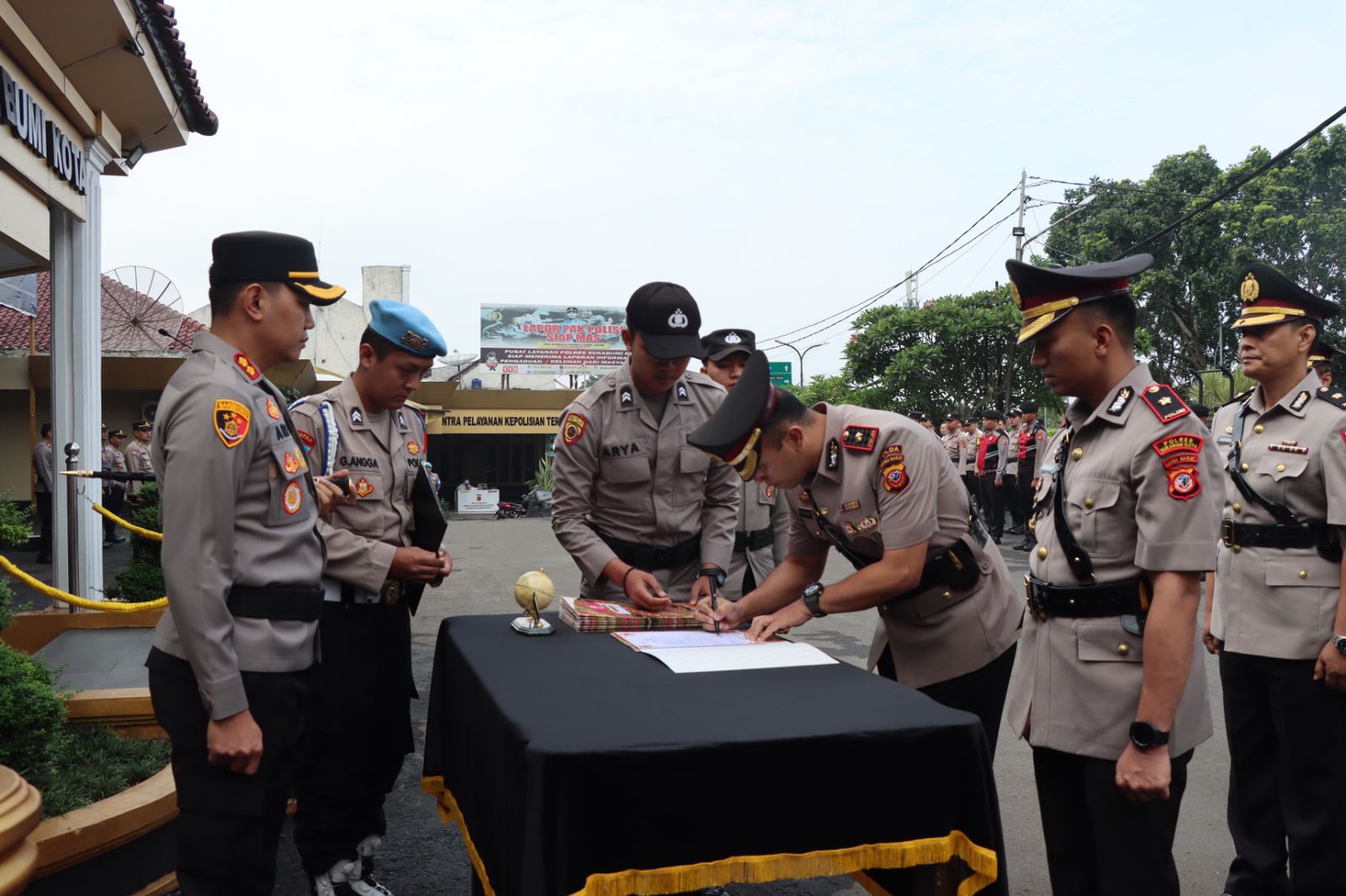 Apel serah terima jabatan perwira utama dan kapolsek di Polres Sukabumi Kota. ( Jabar Memanggil/ P. Haeruman)[/caption]