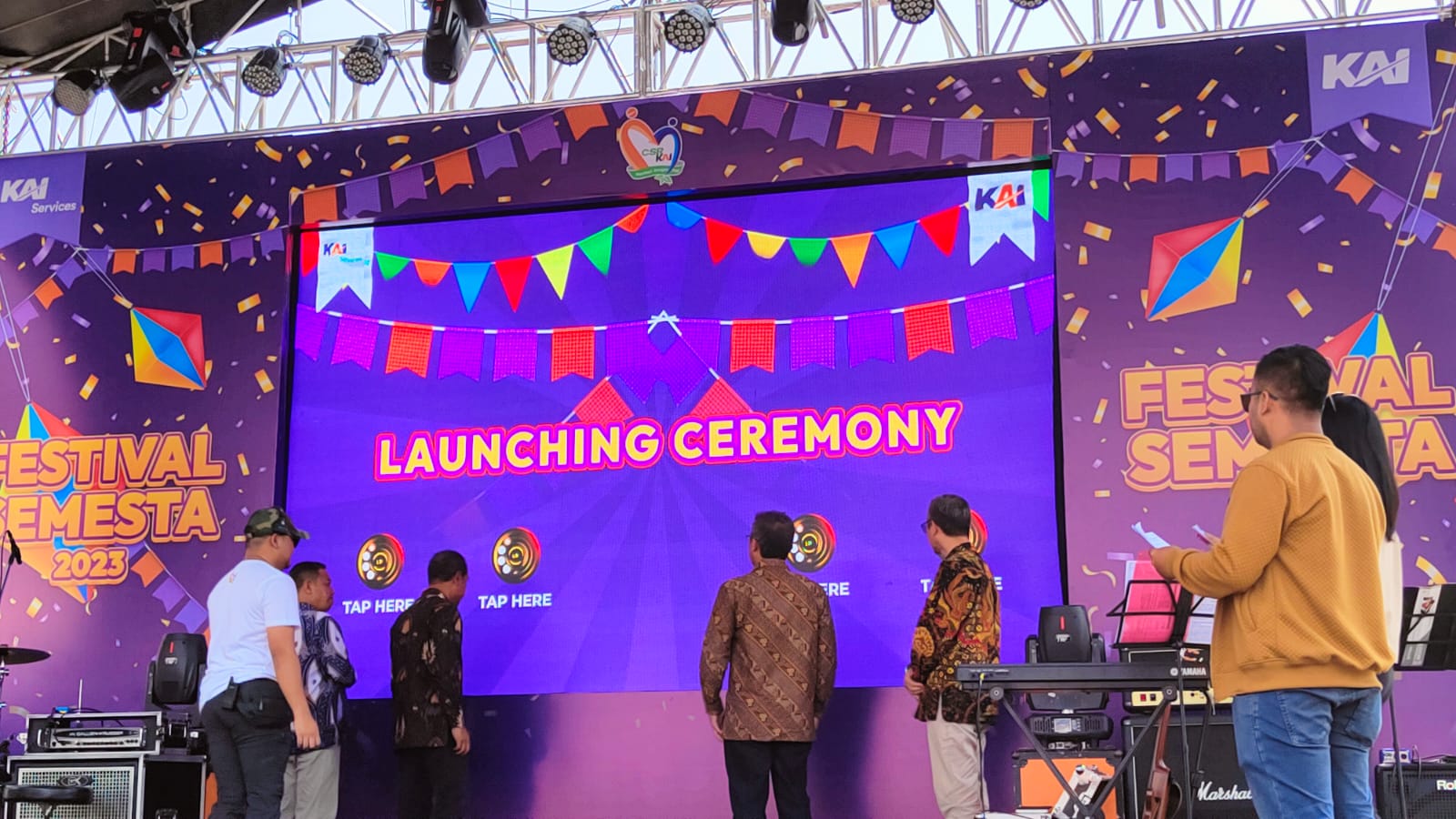 JABAR MEMANGGIL - Dalam rangka mempertahankan pertumbuhan ekonomi dan menekan laju inflasi strategi peningkatan belanja masyarakat berpenghasilan menengah terhadap produk UMK, PT Kereta Api Indonesia (Persero) berkolaborasi dengan KAI Services menyelenggarakan acara Festival “Semarak Pesta Rakyat (Semesta) Tahun 2023”.