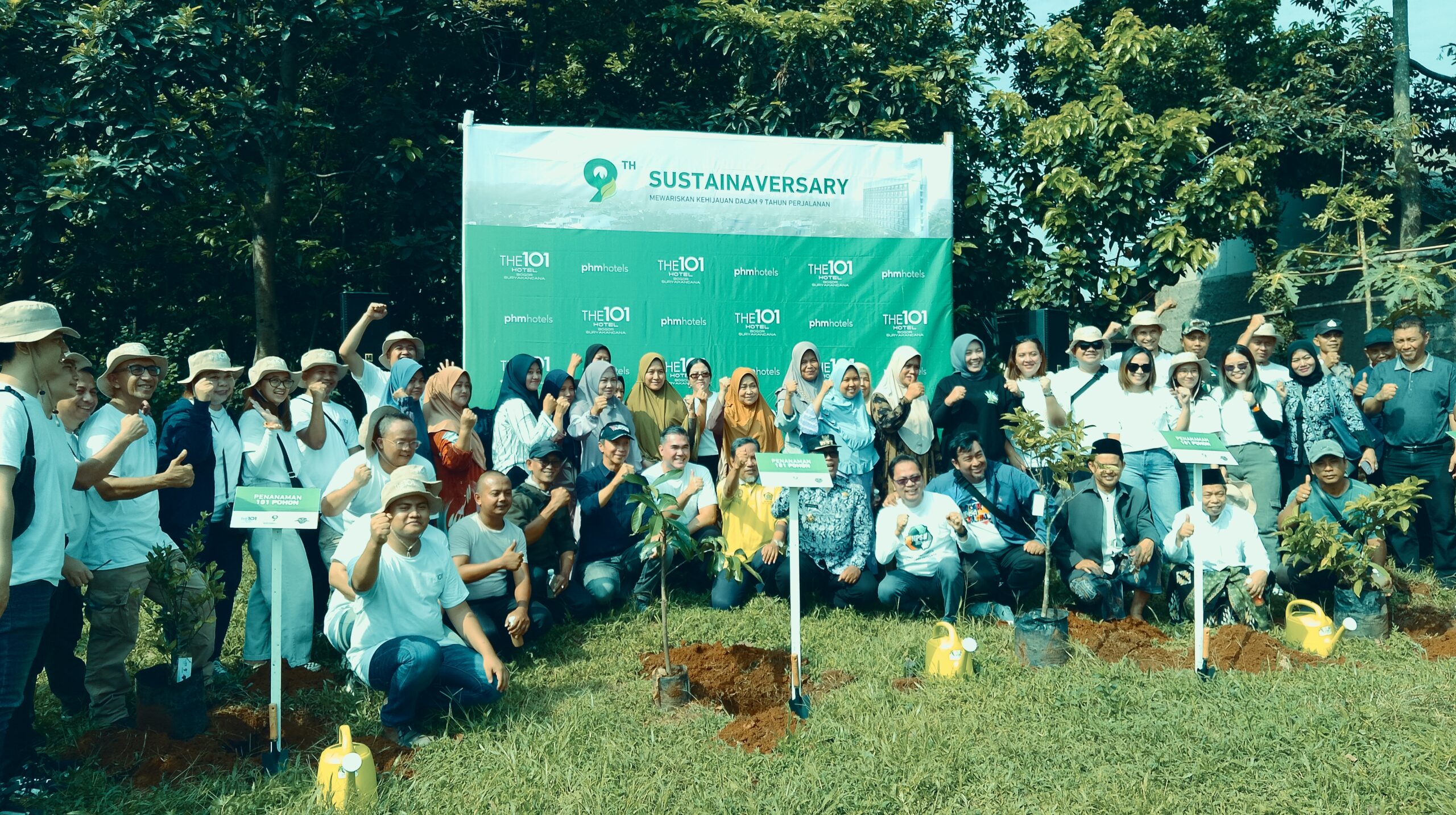 JABAR MEMANGGIL- Merayakan pencapaian kesembilan tahunnya, THE 1O1 Hotel Bogor Suryakancana meneguhkan komitmennya terhadap keberlanjutan lingkungan dengan memberikan sumbangan 101 tanaman kepada Warga Kampung Cikeas RT 01 RW 03 Kelurahan Katulampa, Kecamatan Bogor Timur.