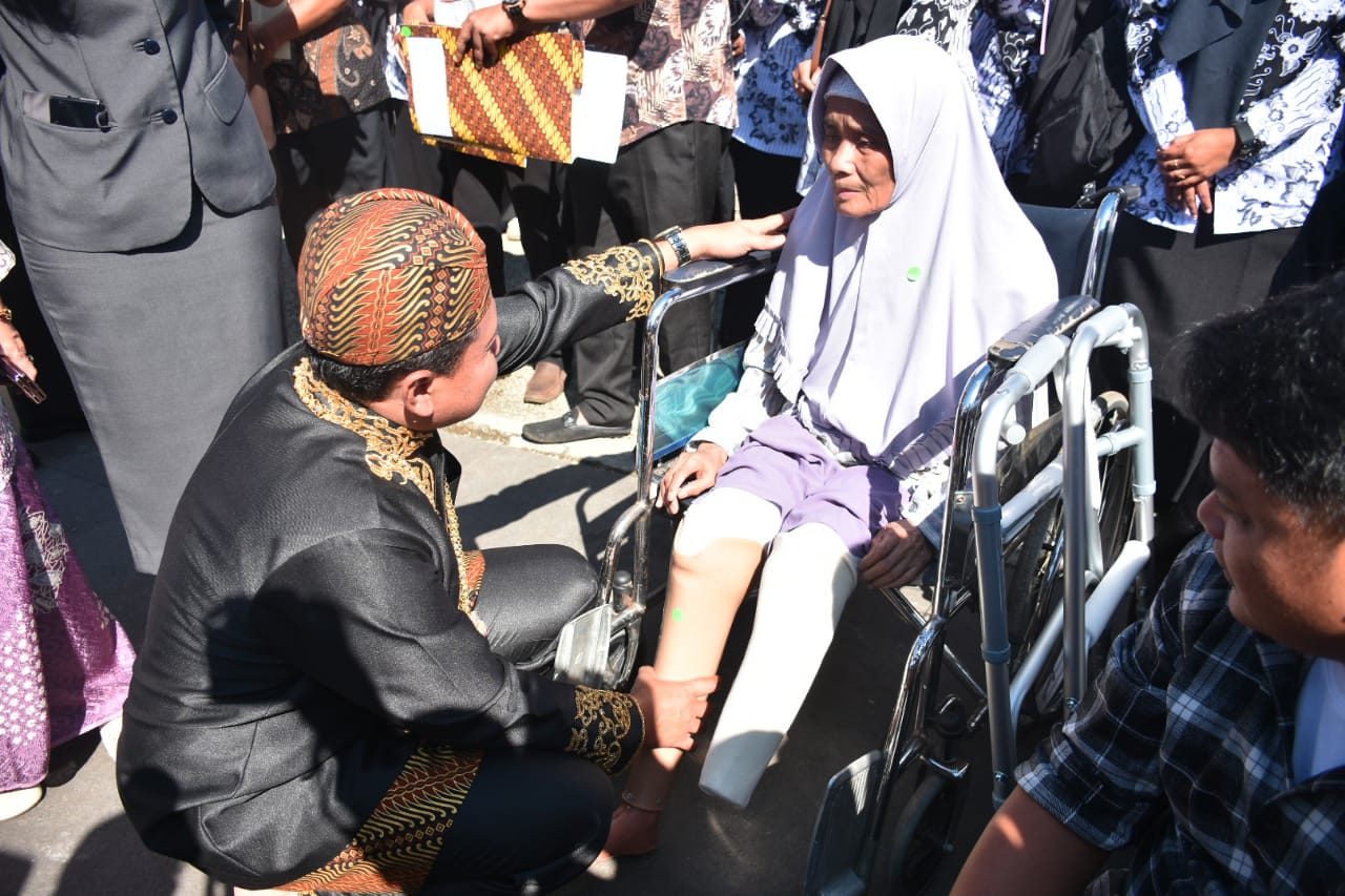 Bantuan yang diberikan berupa kaki palsu untuk dua orang dan bantuan modal produktif bagi pasangan tuna wicara berbentuk satu printer dan mesin jahit.