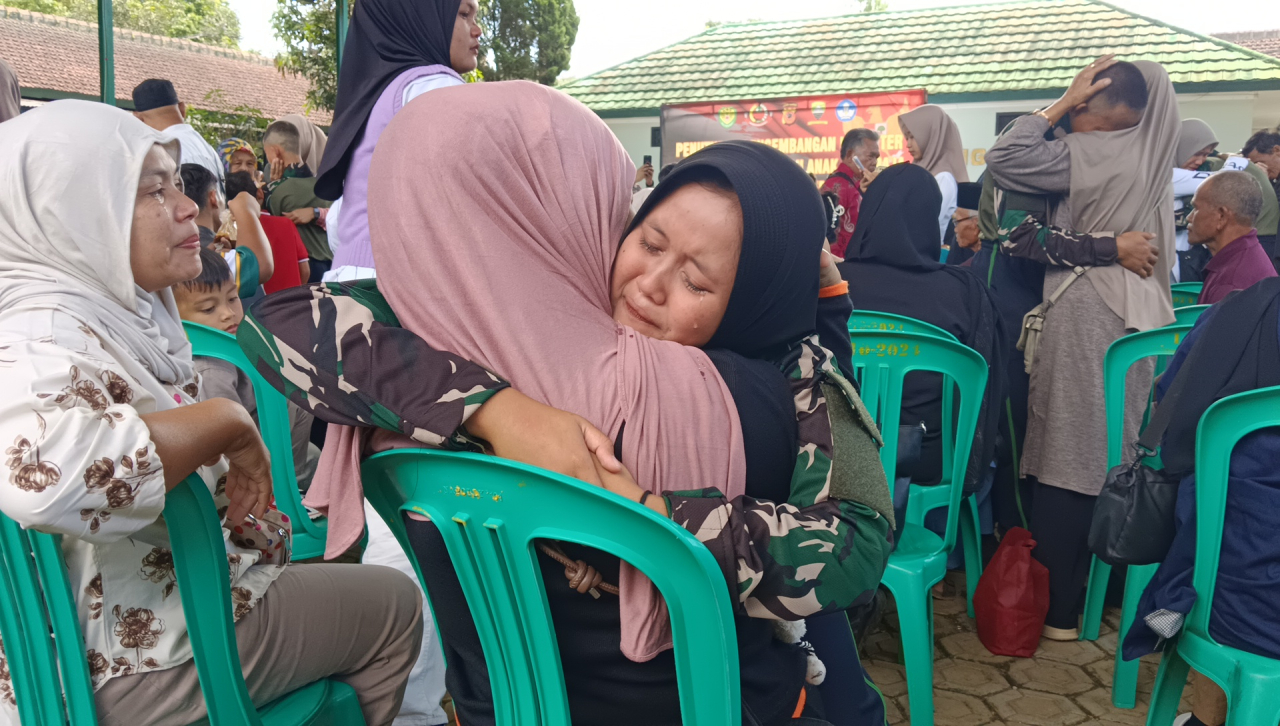 JABAR MEMANGGIL- Suasana penuh haru menyelimuti halaman Makodim 0610/Sumedang, Senin (2/6/2025), saat puluhan anak dan remaja peserta Pembinaan Karakter dan Wawasan Kebangsaan kembali ke pelukan orang tua masing-masing hampir satu bulan penuh ditempa dalam disiplin, akhlak, dan cinta Tanah Air.