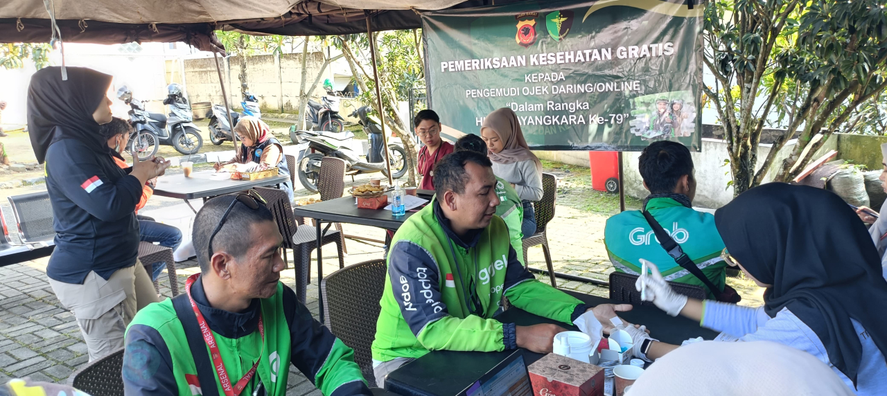 Ratusan pengemudi ojek online mendapatkan pelayanan kesehatan secara gratis, meliputi pemeriksaan kesehatan umum, pengecekan gula darah, hingga pemberian obat. Kegiatan ini melibatkan personel Sidokkes Polres Sumedang dan tenaga medis dari Puskesmas Sumedang Utara.