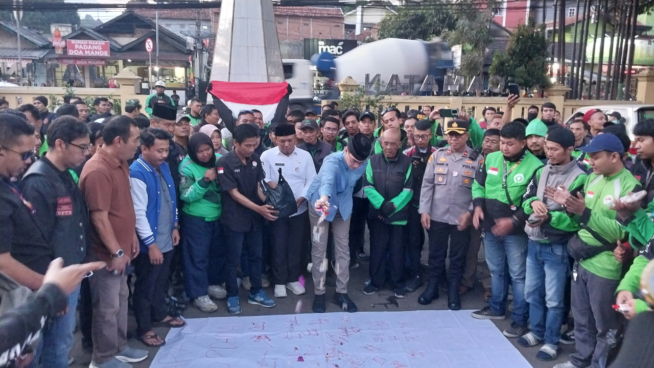 “Ini yang membanggakan dari karakter orang Sumedang: someah, cageur, bageur, pinter, singer. Terbukti para pengemudi ojol bisa menjaga agar tidak terjadi chaos, tidak ada provokasi, dan aksi berjalan damai,” ujar Wakil Bupati Sumedang, M. Fajar Aldila yang turut hadir.