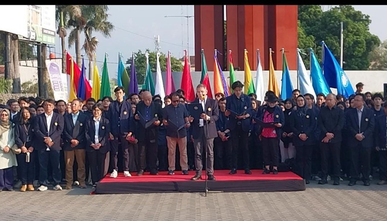 JABAR MEMANGGIL- Rektor dan segenap sivitas akademika Universitas Padjadjaran menyampaikan sikap dan pandangan terhadap situasi yang terjadi belakangan ini di Indonesia. Pernyataan sikap yang diberi nama Maklumat Makalangan tersebut dibacakan di Tugu Makalangan Unpad Kampus Jatinangor, Kamis (4/9/2025)