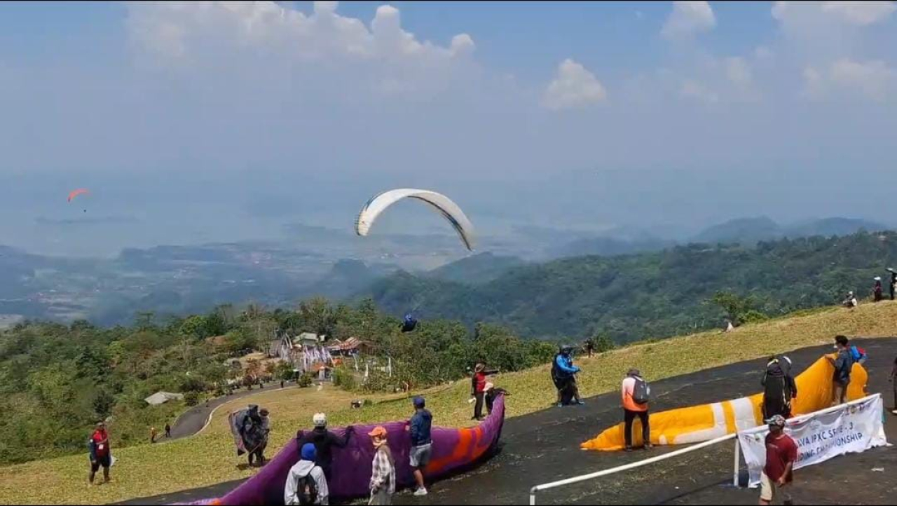JABAR MEMANGGIL- Wisatawan Setelah sempat tertunda di hari pertama karena arah angin yang tidak menentu, ajang West Java Paragliding Championship 2025 akhirnya resmi mengudara pada hari kedua. Sebanyak 120 atlet dari 18 negara berhasil terbang di langit Sumedang, Senin (22/9/2025).