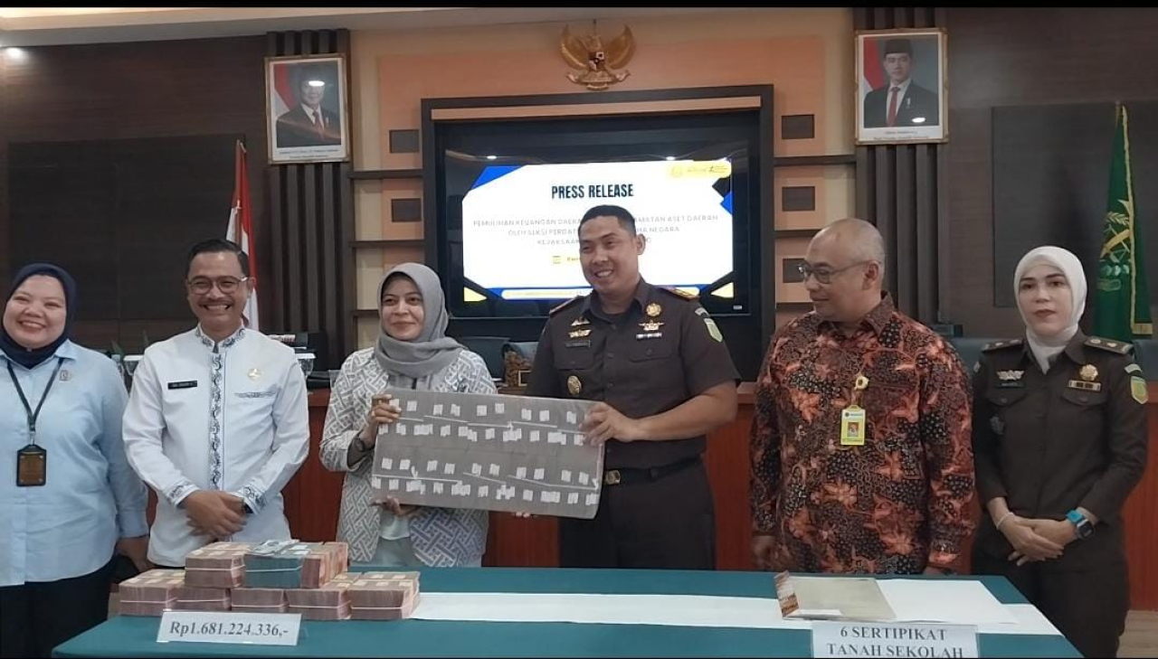 JABAR MEMANGGIL- Kejari Sumedang berhasil melakukan Pemulihan Keuangan Daerah dan Penyelamatan Aset Daerah sebesar Rp1.681.224.336 (satu milyar enam ratus delapan puluh satu juta dua ratus dua puluh empat ribu tiga ratus riga puluh enam rupiah) dan 6 (enam) sertifikat tanah sekolah.