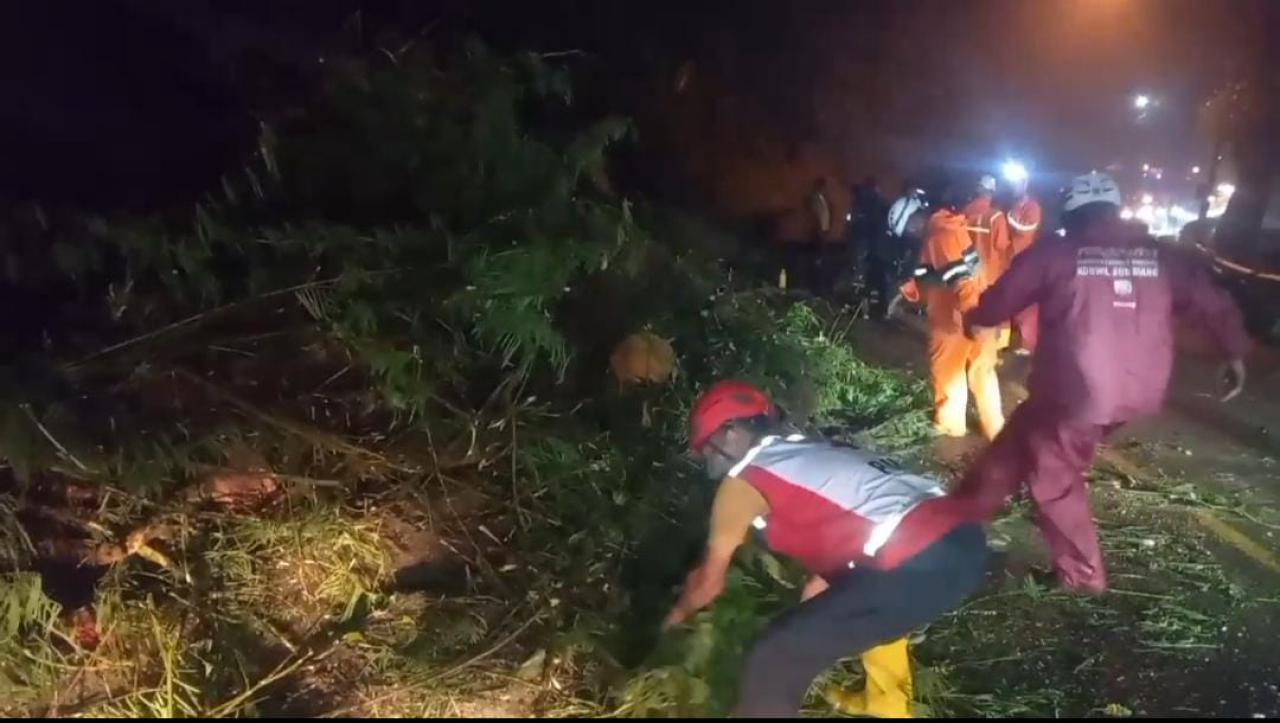 "Dan pohon yang teridentifikasi sementara karena gelap ada 5 pohon besar yang tumbang, dan satu menutupi jalan" ungkapnya.