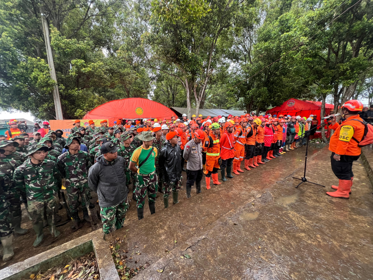 Briefing operasi dipimpin langsung oleh Direktur Operasi Pencarian dan Pertolongan Basarnas, Laksamana Pertama TNI Yudhi Bramantyo. Tim SAR gabungan yang melibatkan Basarnas, TNI/Polri, Kementerian PUPR, BNPB, Kementerian Kesehatan, BUMN, BUMD, Pemerintah Provinsi Jawa Barat, relawan, serta komunitas SAR bersinergi menggunakan berbagai metode, mulai dari pencarian manual, anjing pelacak (alkon), hingga alat berat.