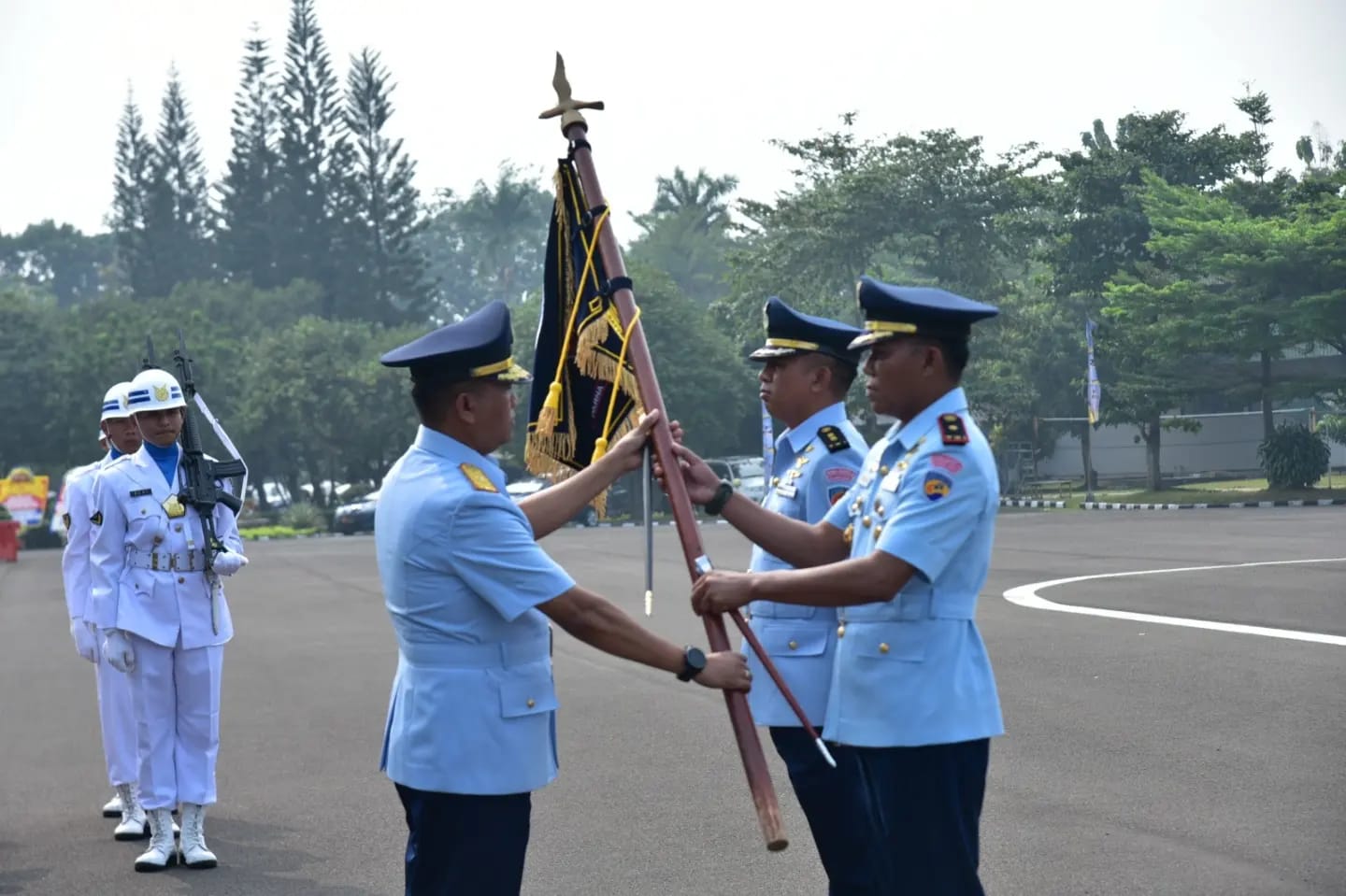 JABAR MEMANGGIL - Komandan Lanud Atang Sendjaja (Danlanud ATS) Bogor, Marsekal Pertama TNI M Taufiq Arasj, memimpin upacara serah terima jabatan Komandan Skadron Udara 6 Wing Udara 4 Lanud ATS. Dalam acara tersebut, Letkol Pnb Ageng Wahyudi, menyerahkan komando kepada penggantinya, Mayor Pnb Heru Wendra.